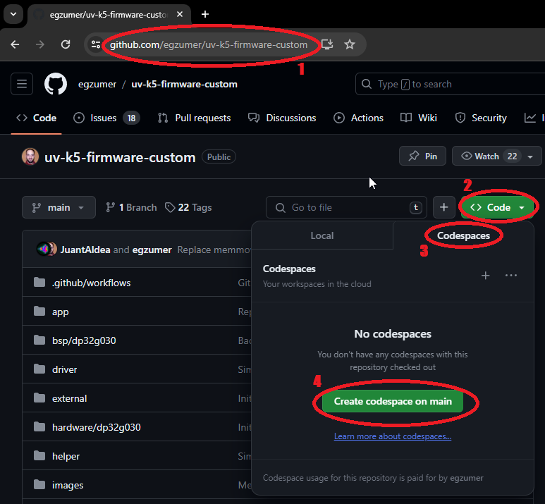 - Go to https://github.com/egzumer/uv-k5-firmware-custom