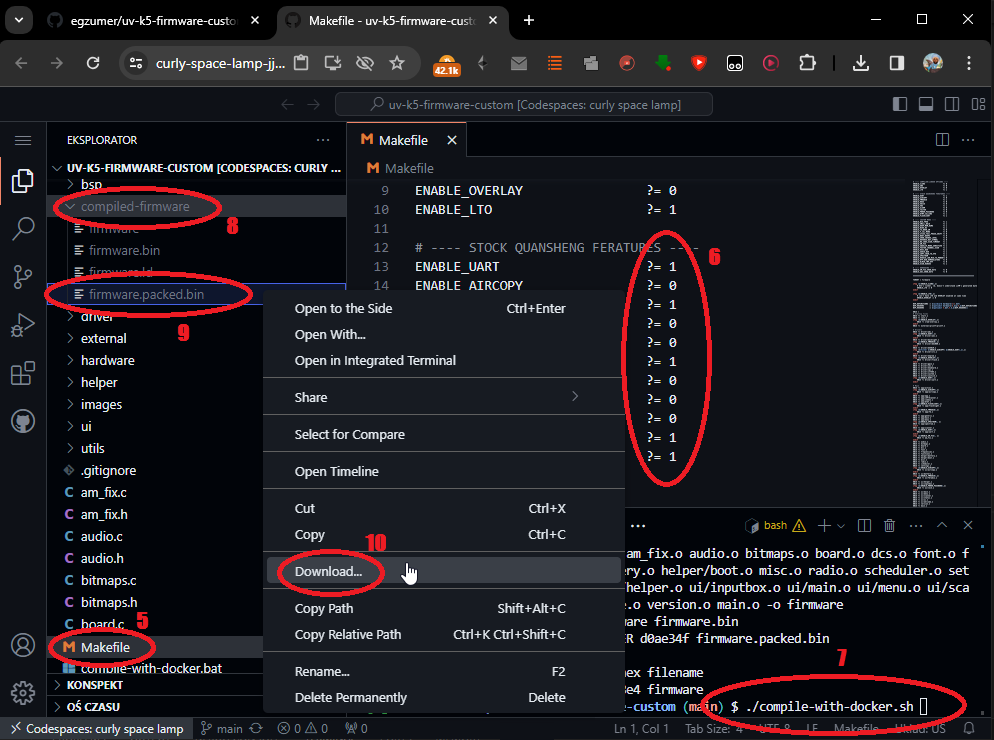 c:\projects\uv-k5-firmware-customand runningwin_make.bator by running a command line:cd /D c:\projects\uv-k5-firmware-custom win_make.bat - To reset the repository and pull new changes run (!!! it will delete all your changes !!!):